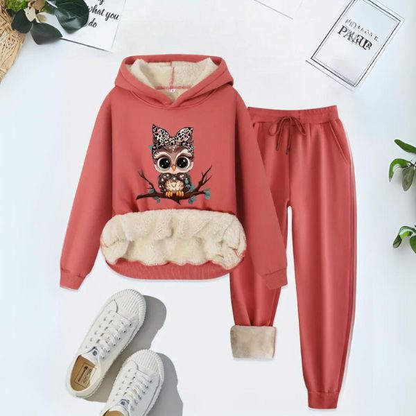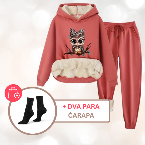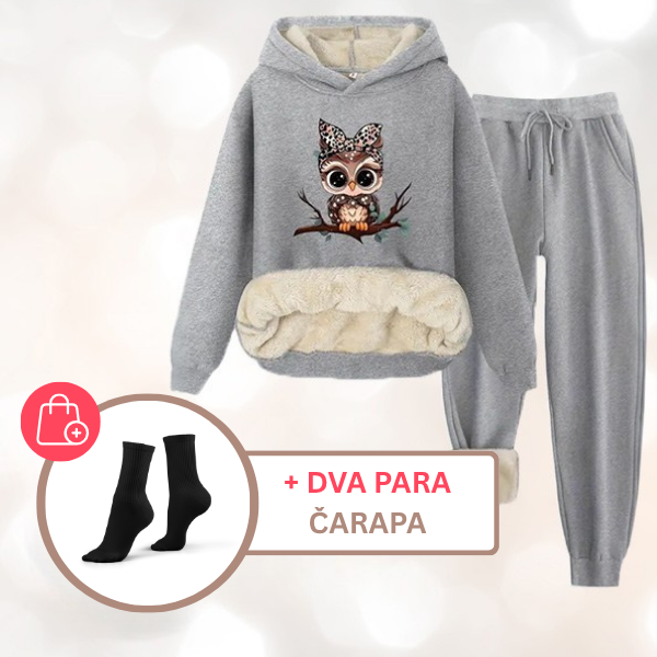 Komplet s printom sovice: topla trenirka dugih rukava i hlače za jesen i zimu.